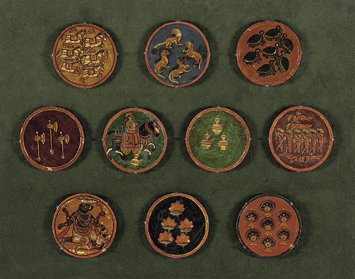 Indian board games are typically cross and circle games with randomisers, played by two to four players. The players’ status was reflected in the choice of game or the type of board, with emperors like Akbar playing a life-sized version of Chaupar. At one time considered talismans and even a form of currency, cowrie shells were used as an affordable randomiser or token for board games by most people, while wealthier classes used ivory dice.
