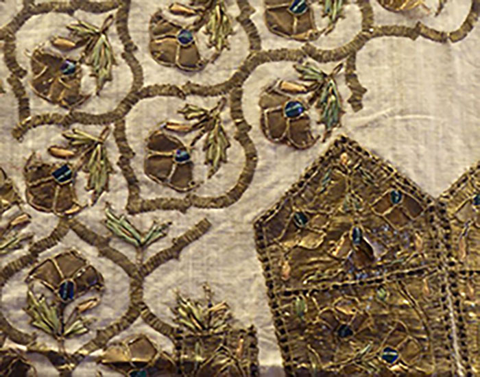 Used to embellish clothing as well as home furnishings with the iridescent wings, or elytra, of the Jewel beetle of the Buprestidae family, beetle wing embroidery has been historically used in India, Southeast and East Asia…
