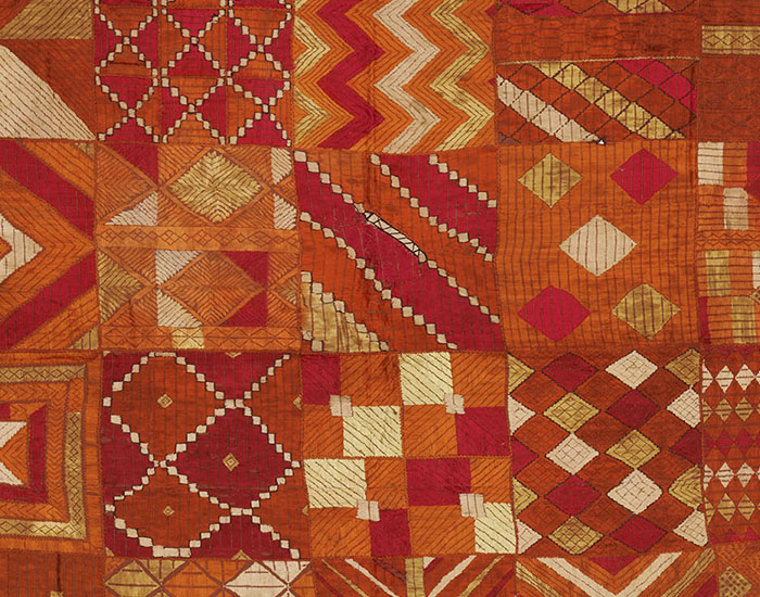 A type of bagh embroidered on a red base cloth with rectangular cells, each containing a different geometric motif in threads of various colours, the bawan bagh has between forty-two and forty-eight cells placed in the main field…